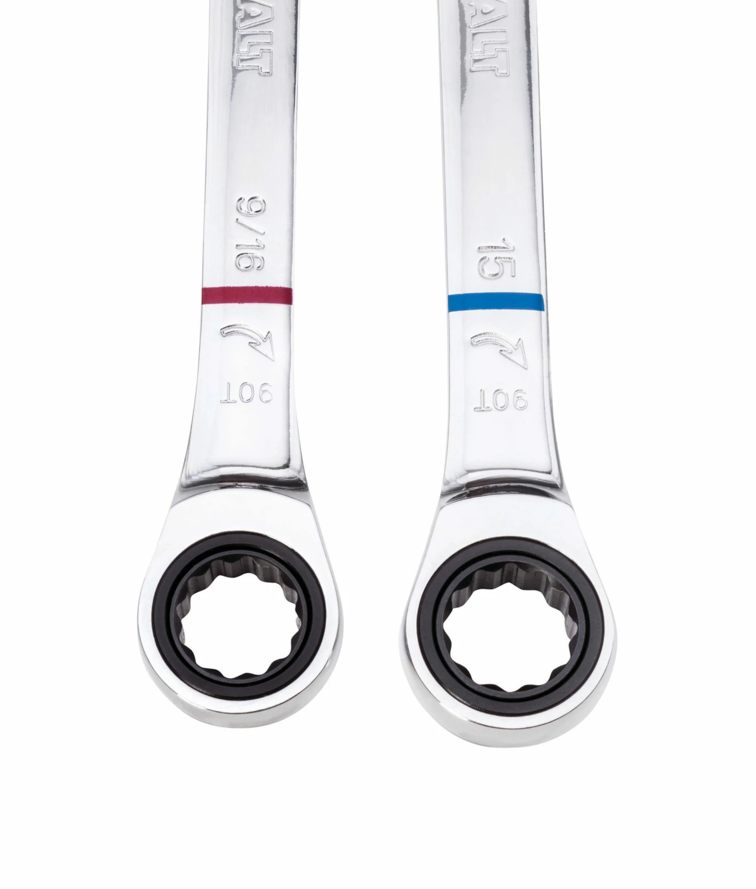 - 90-Tooth ratcheting end provides 4° of arc swing