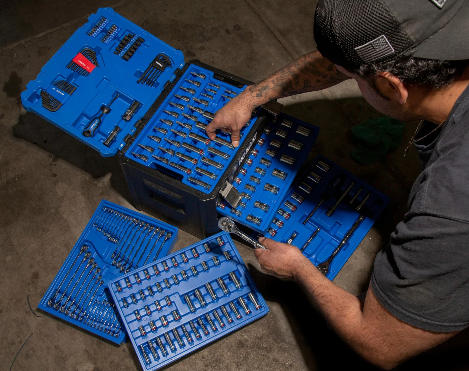 Our newest mechanic’s tool set is packaged in a 4-drawer blow-molded case with reinforced joints to help the case withstand the rigors of day to day use. The inside of the lid, top tray, and middle drawers feature special compartments that securely hold all of the tools in place. Every compartment has a stamped size call-out that indicates what tool belongs there, helping keep things highly organized. High-quality tools include a varied assortment of 1/4-in, 3/8-in and 1/2-in drive sockets, Pro90 ratchets and drive tools to help you conquer the job. We’ve added a wide assortment of other tools including standard and mini combination wrenches, a magnetic bit driver with 19 insert bits, a spinner handle, 12 nut driver bits, and 25 star-shaped and hex keys with this set. Whether you’re working on the go, in the garage, or at home, you’ll truly be able to do it all.