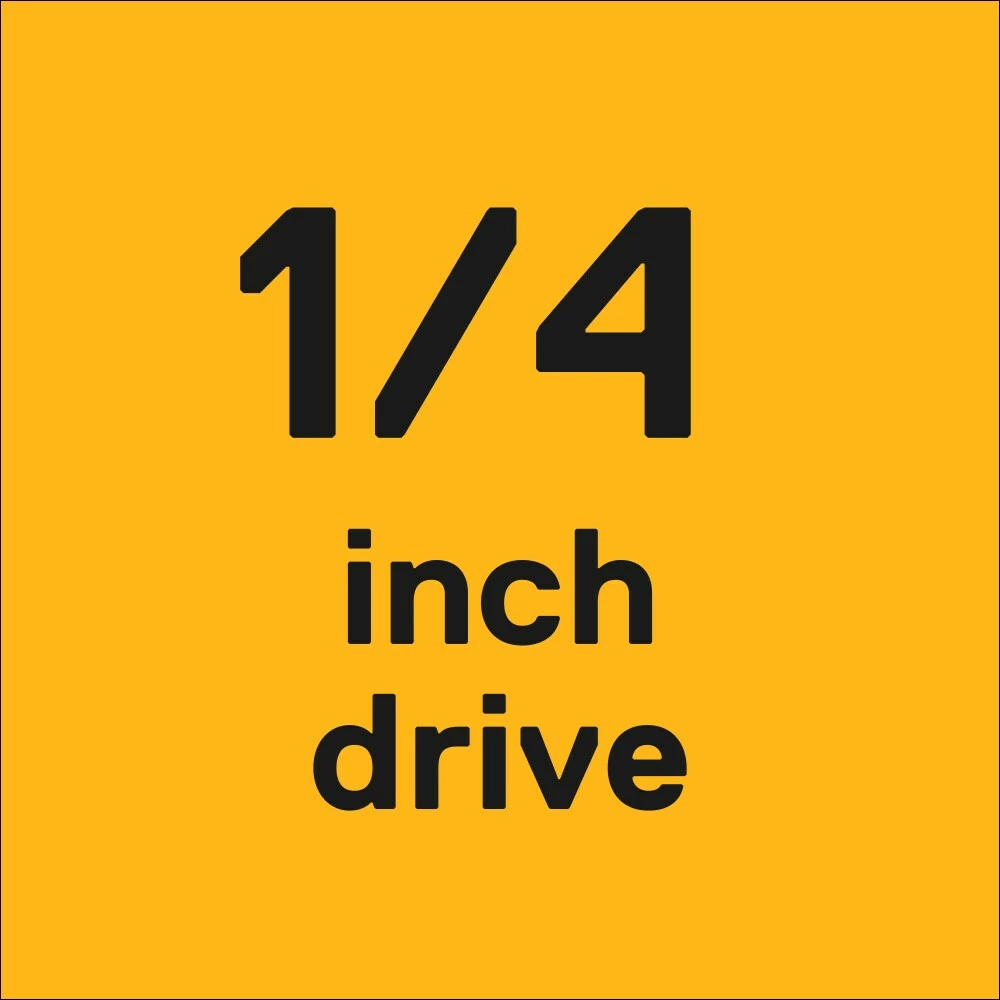 - 1/4-Inch drive metric and SAE socket sizes include 10, 11, 12, 13 and 14 mm as well as 5/32, 3/16, 7/32, 1/4, 9/32, 5/16, 11/32, 3/8, 7/16 and 1/2-in