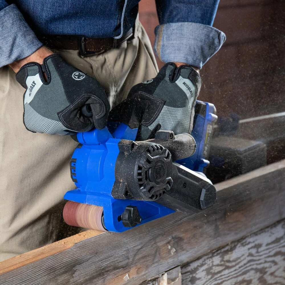 The Kobalt 24-Volt Max 3-In x 18-In Belt Sander is ideal for all your wood working projects. The brushless motor produces speeds up to 1000 FPM (feet per minute) for more runtime, more power, and longer motor life. The belt sander offers a 4 position, tool-less adjustable pommel handle for optimal ergonomics. It is compatible with all Kobalt 24-volt batteries and chargers (sold separately), and also comes with a 5-year limited warranty.